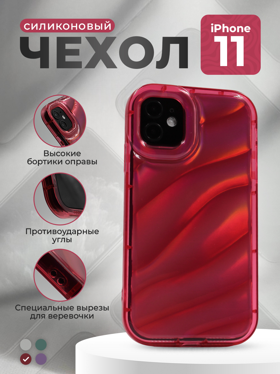 Силиконовый чехол с лазерным 3D эффектом волны для iPhone 11, прозрачный-розово-красный