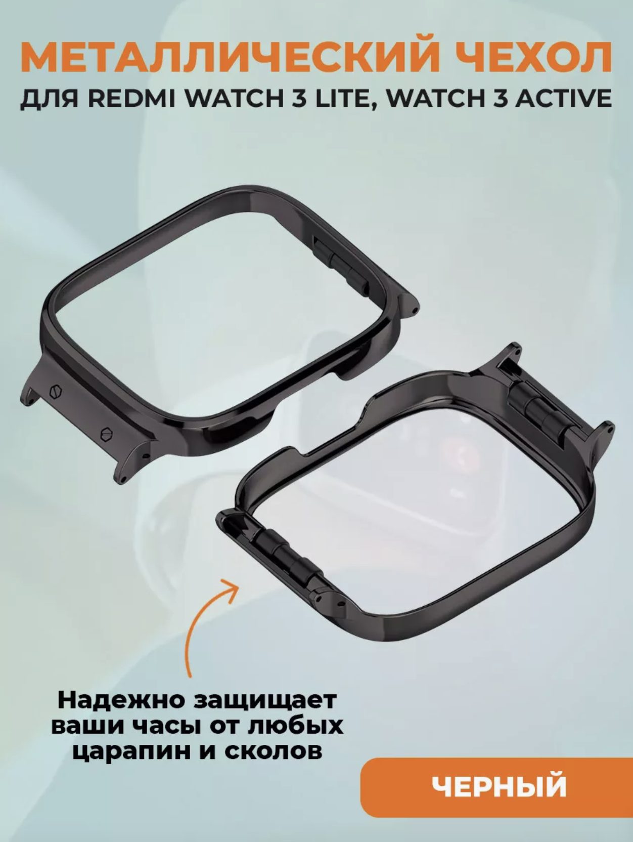 Металлический чехол для Redmi Watch 3 Lite, Watch 3 Active, черный