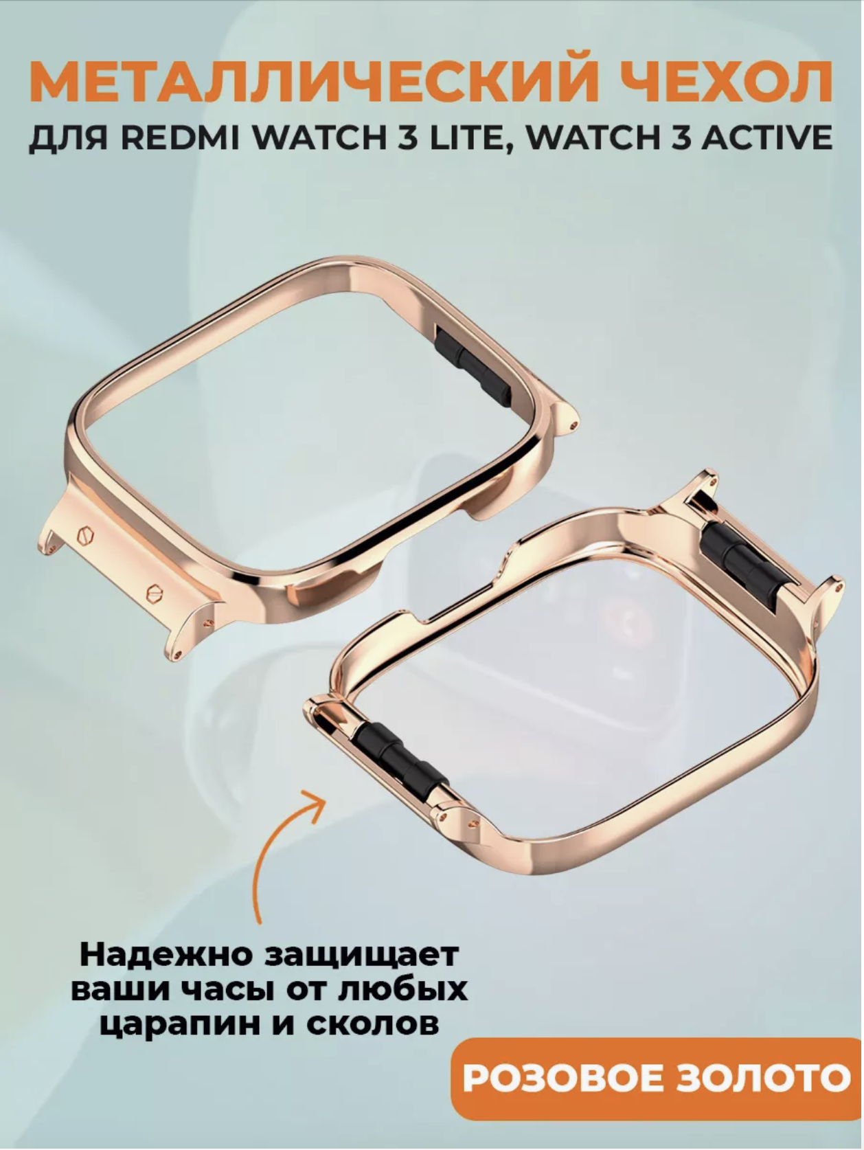 Металлический чехол для Redmi Watch 3 Lite, Watch 3 Active, розовое золото