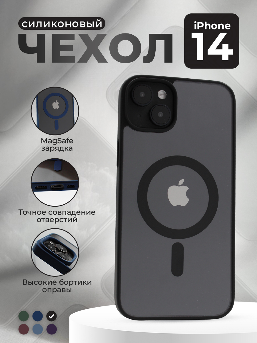 Прозрачный чехол с матовой рамкой для iPhone 14, MagSafe, черный