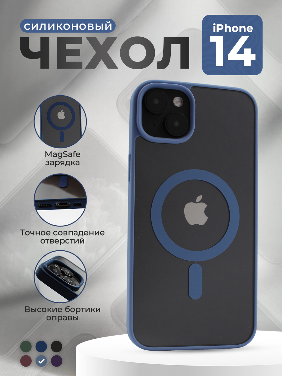 Прозрачный чехол с матовой рамкой для iPhone 14, MagSafe, голубой