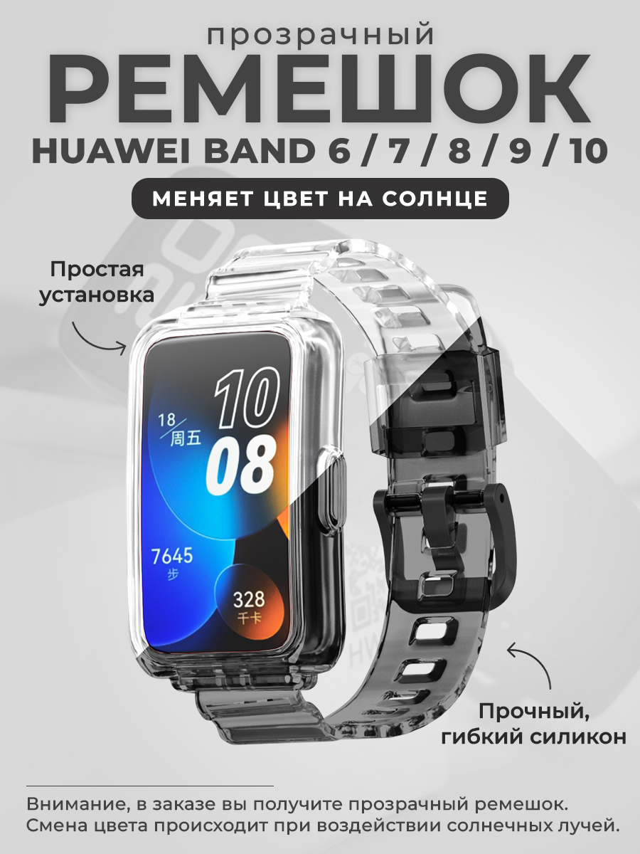 Прозрачный ремешок для Huawei Band 6/7/8/9/10, меняет цвет на солнце, прозрачный-черный
