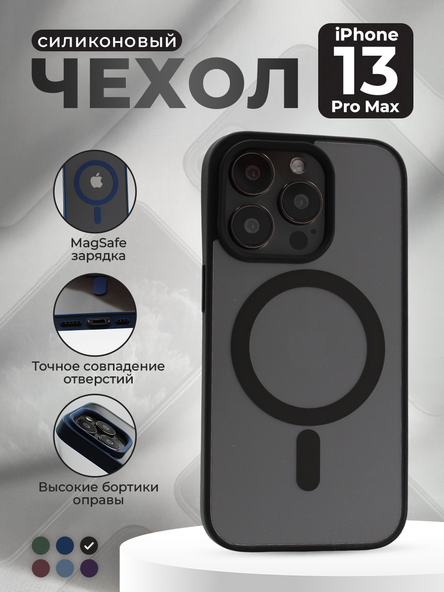 Прозрачный чехол с матовой рамкой для iPhone 13 Pro Max, MagSafe, черный