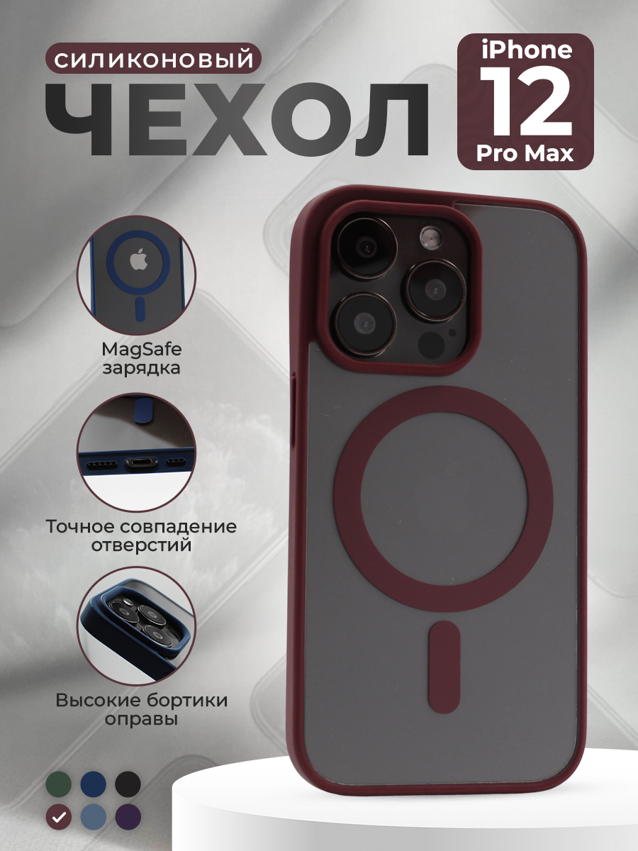 Прозрачный чехол с матовой рамкой для iPhone 12 Pro Max, MagSafe, винный
