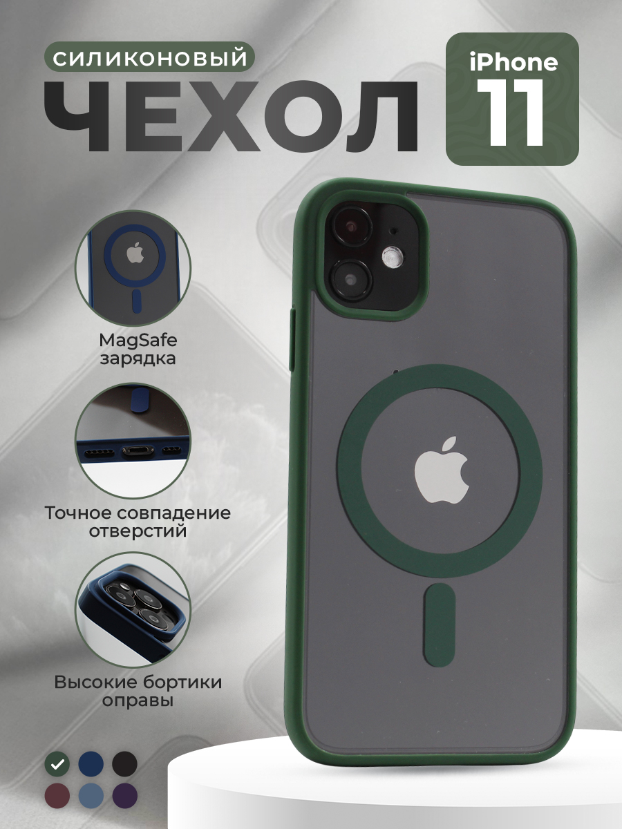 Прозрачный чехол с матовой рамкой для iPhone 11, MagSafe, зеленый