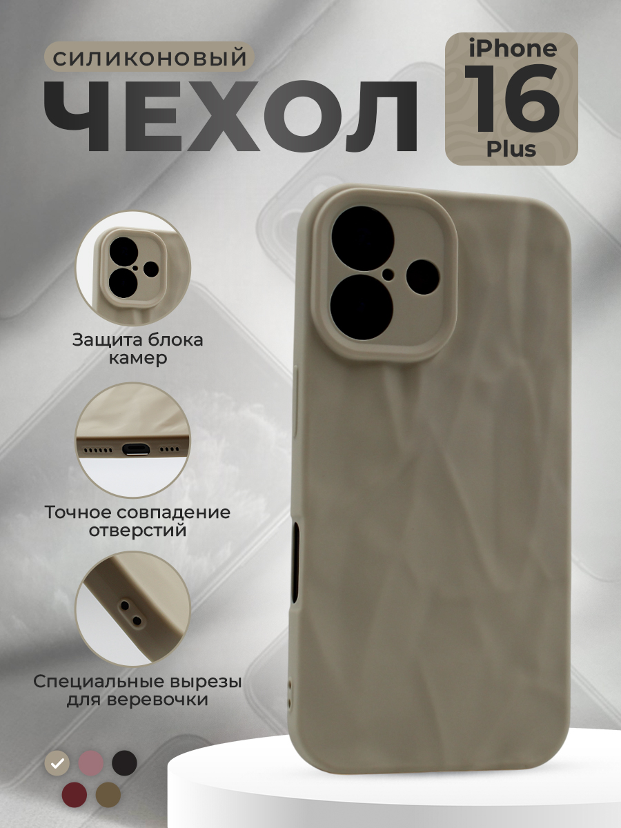 Добавьте стиль и защиту вашему iPhone 16 Plus с этим элегантным мягким силиконовым чехлом. Наш чехол обладает уникальным дизайном с эффектом мятой текстуры, который не только привлекает внимание, но и обеспечивает надежный захват устройства. Силиконовая структура идеально облегает ваш iPhone 16 Plus, защищая его от царапин, ударов и пыли.