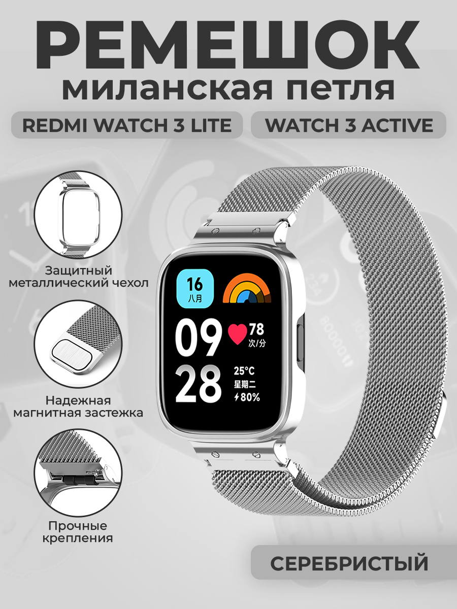 Ремешок миланская петля для Redmi Watch 3 Lite, Watch 3 Active, серебристый