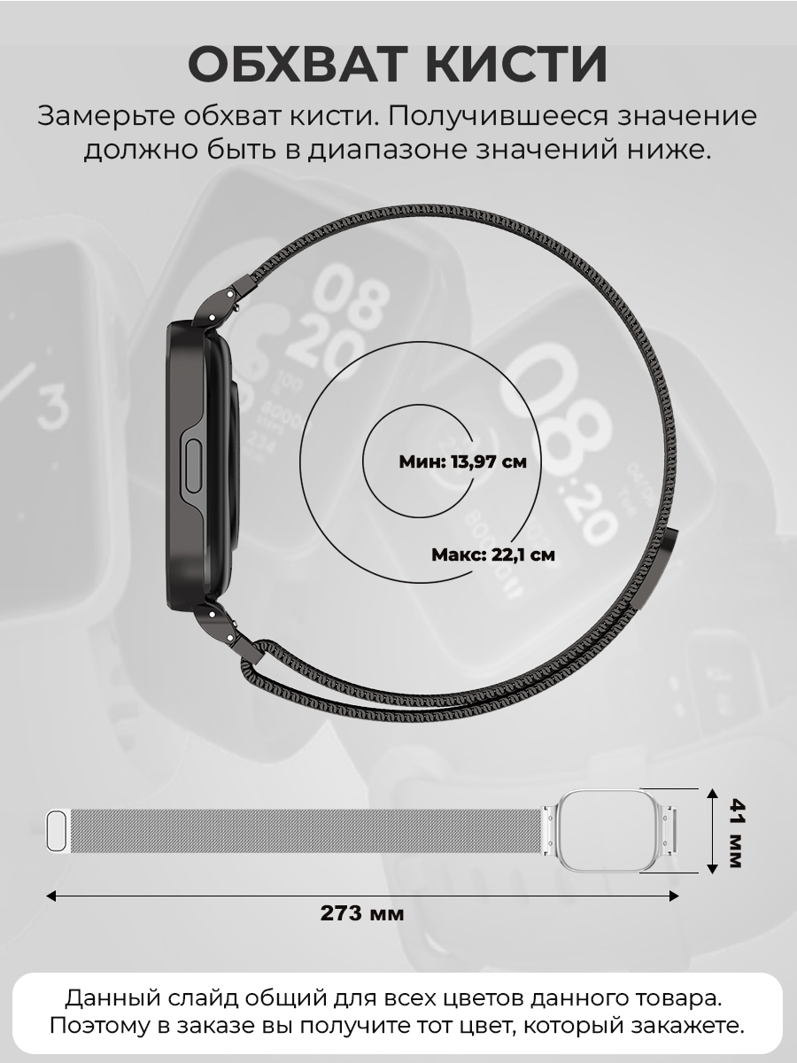 Изготовленный из однотоных ремешков из нержавеющей стали, этот металлический ремешок xiaomi redmi watch 3 active выполнен в различных темных тонах и светлых оттенках, что позволяет легко сочетать его с любым стилем одежды. Застежка с магнитной застежкой обеспечивает надежную фиксацию мужского ремешка Redmi Watch, удобную для активного образа жизни.