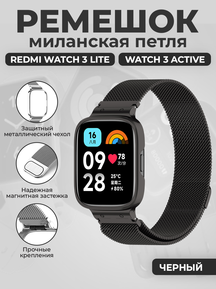 Ремешок миланская петля для Redmi Watch 3 Lite, Watch 3 Active, черный
