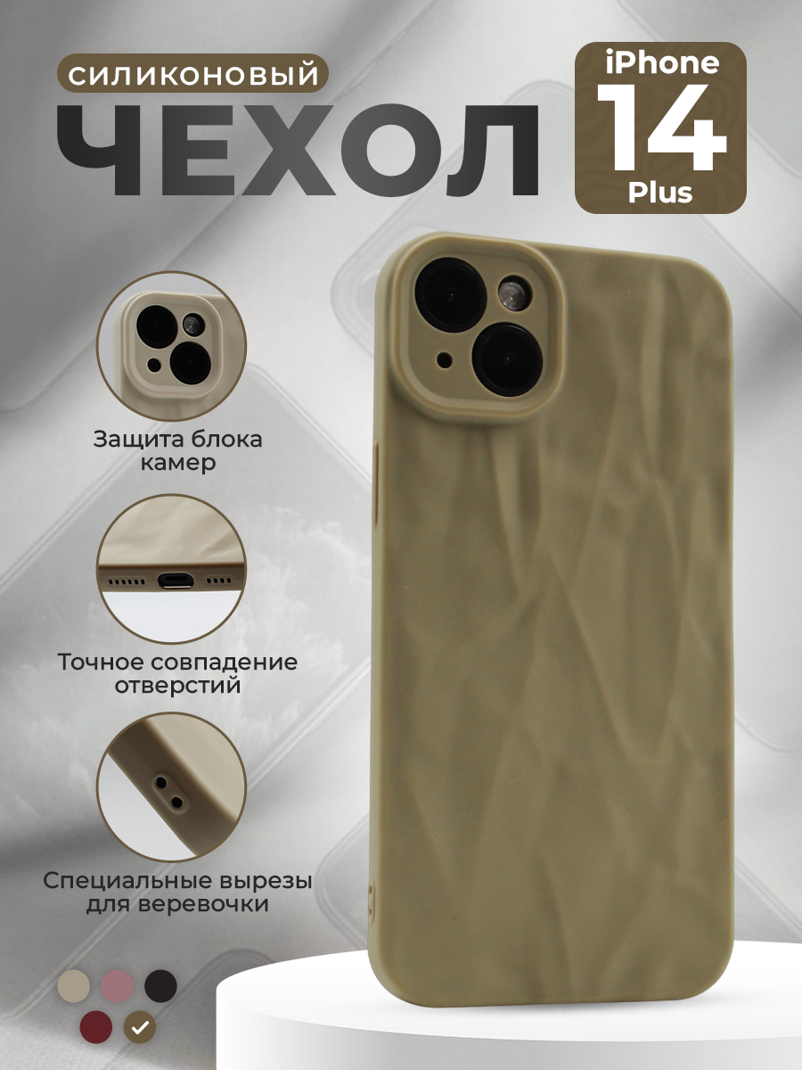 Мягкий силиконовый чехол для iPhone 14 Plus, эффект мятой текстуры, кофейный