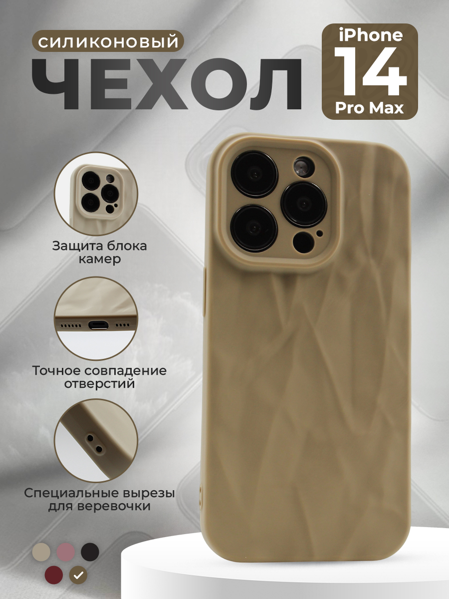Мягкий силиконовый чехол для iPhone 14 Pro Max, эффект мятой текстуры, кофейный