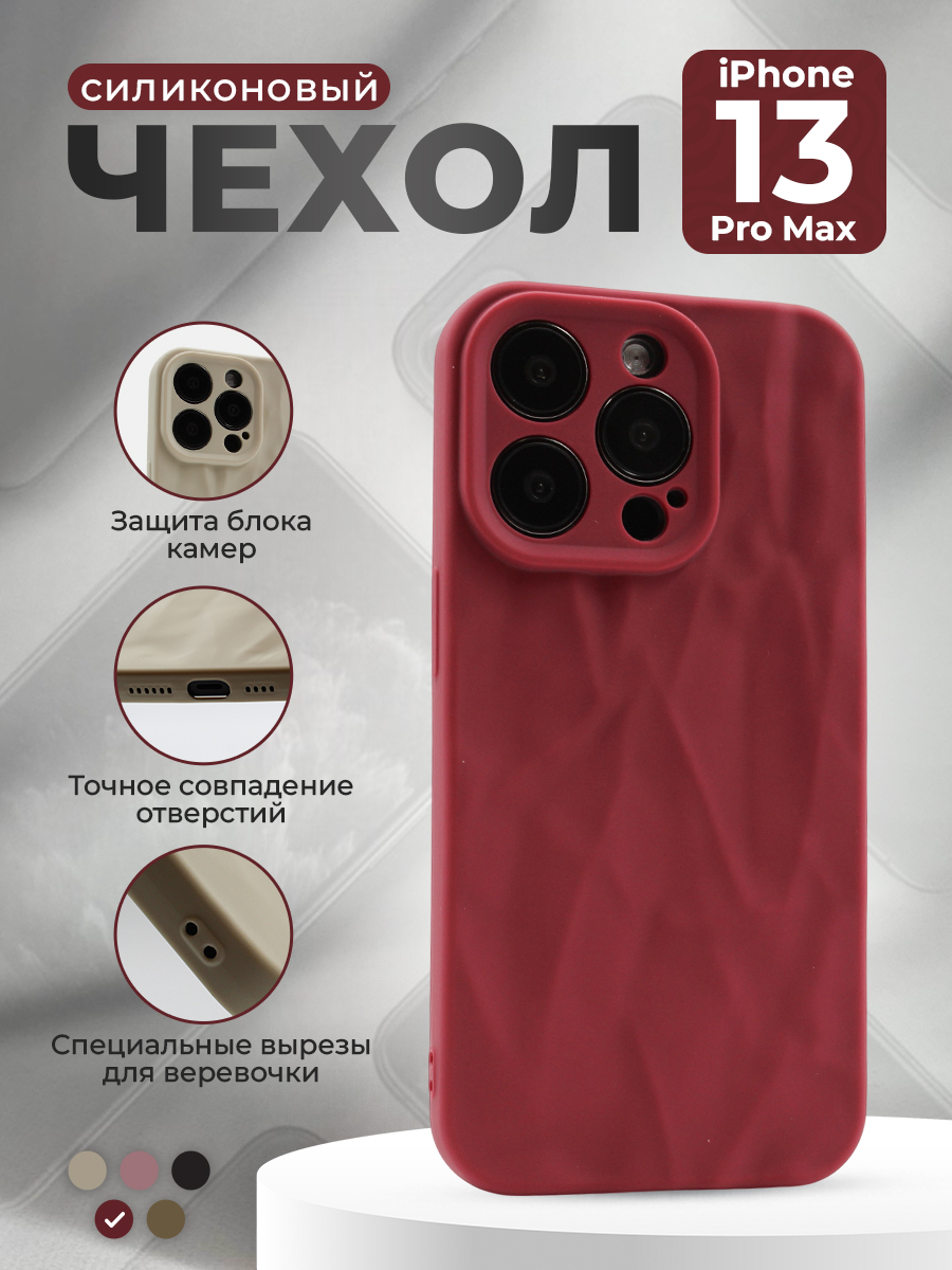 Мягкий силиконовый чехол для iPhone 13 Pro Max, эффект мятой текстуры, винный