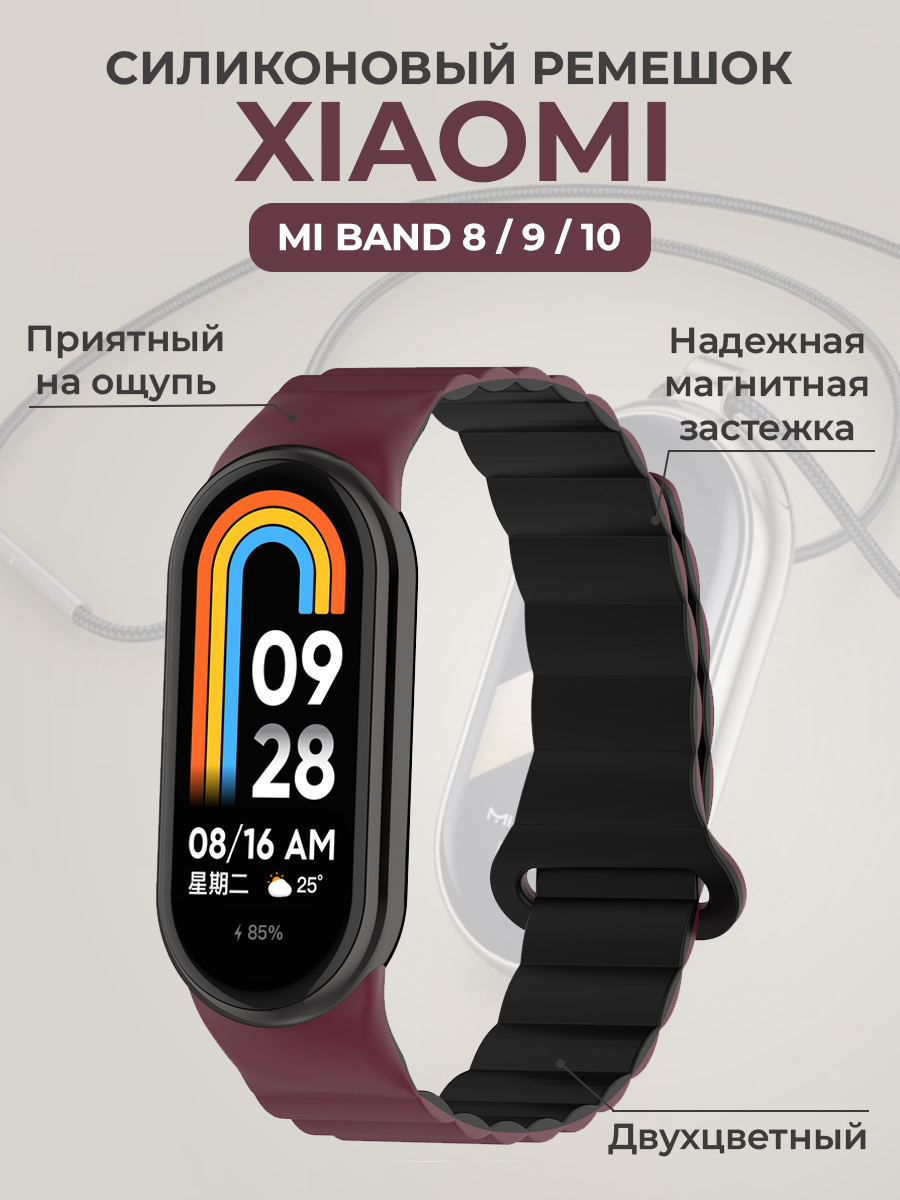 Силиконовый ремешок для Xiaomi Mi Band 8/9/10, с магнитной застежкой, винно-черный