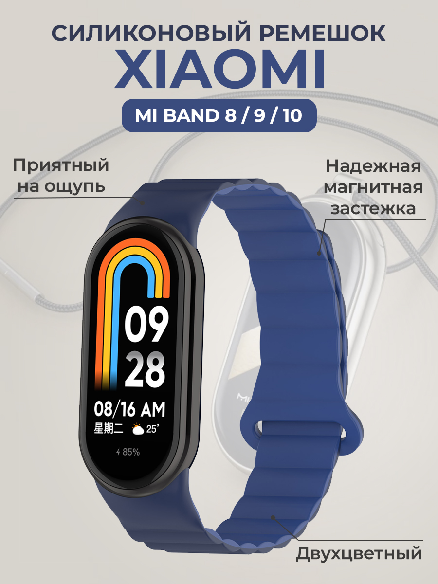 Силиконовый ремешок для Xiaomi Mi Band 8/9/10, с магнитной застежкой, темно-синий - светло-синий