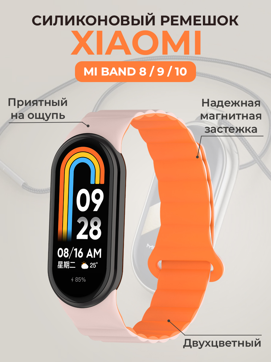 Силиконовый ремешок для Xiaomi Mi Band 8/9/10, с магнитной застежкой, розово-оранжевый