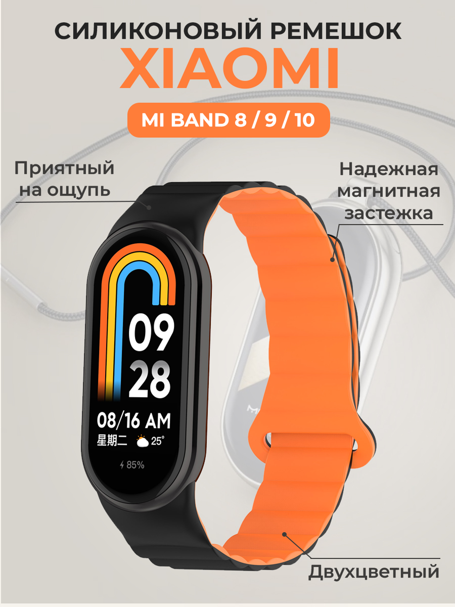 Силиконовый ремешок для Xiaomi Mi Band 8/9/10, с магнитной застежкой, черно-оранжевый
