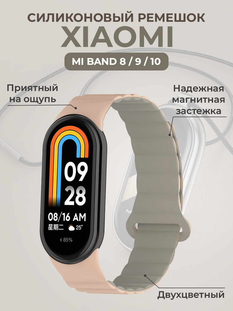 Силиконовый ремешок для Xiaomi Mi Band 8/9/10, с магнитной застежкой, кремово-серый