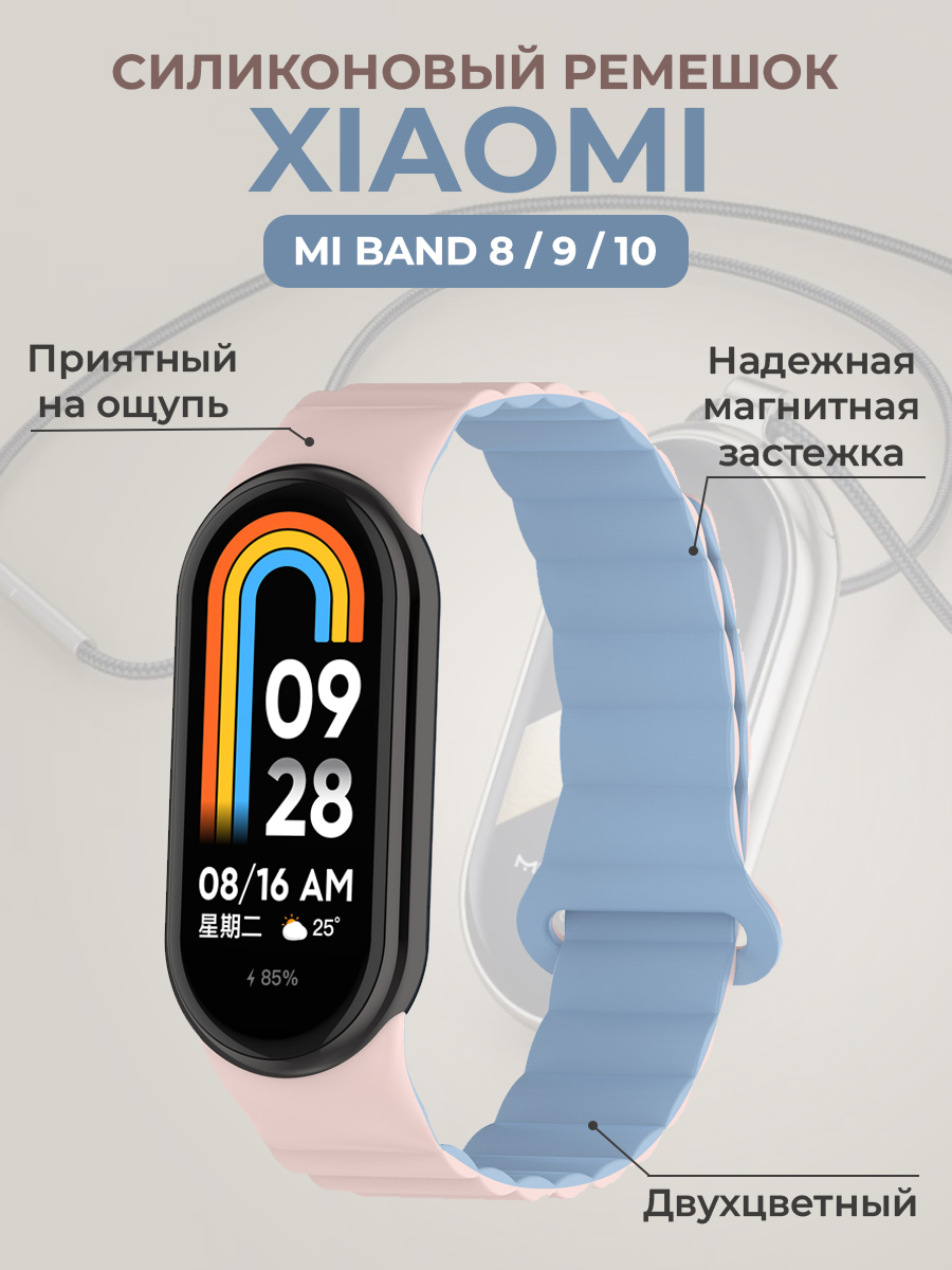 Силиконовый ремешок для Xiaomi Mi Band 8/9/10, с магнитной застежкой, розово-голубой