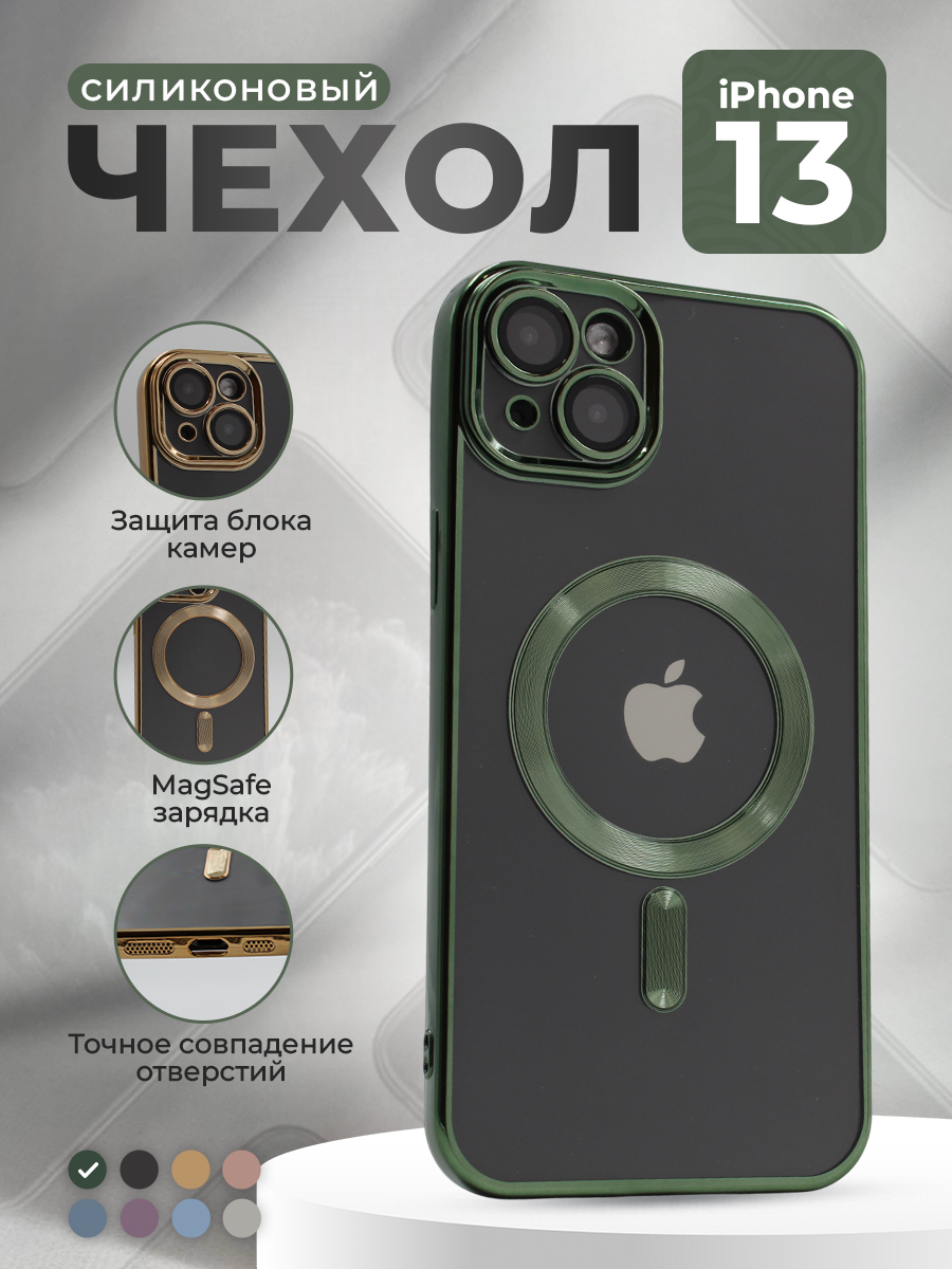 Прозрачный чехол с глянцевой рамкой для iPhone 13, MagSafe, зеленый