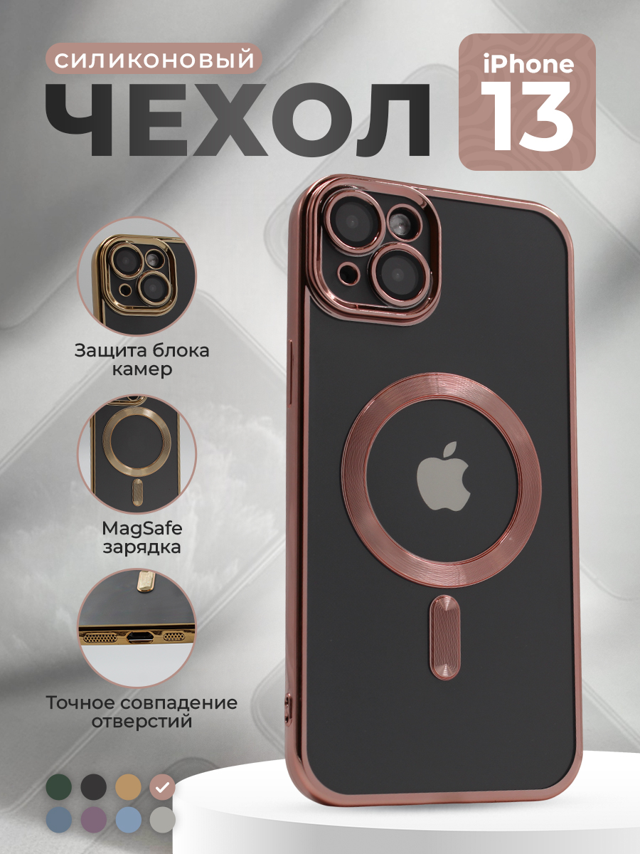 Прозрачный чехол с глянцевой рамкой для iPhone 13, MagSafe, розовый