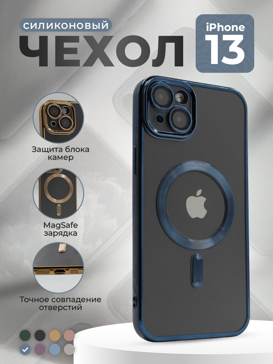 Прозрачный чехол с глянцевой рамкой для iPhone 13, MagSafe, темно-синий