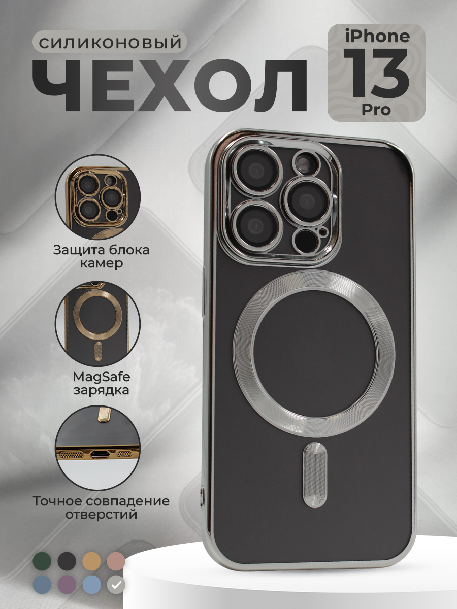Прозрачный чехол с глянцевой рамкой для iPhone 13 Pro, MagSafe, серебристый