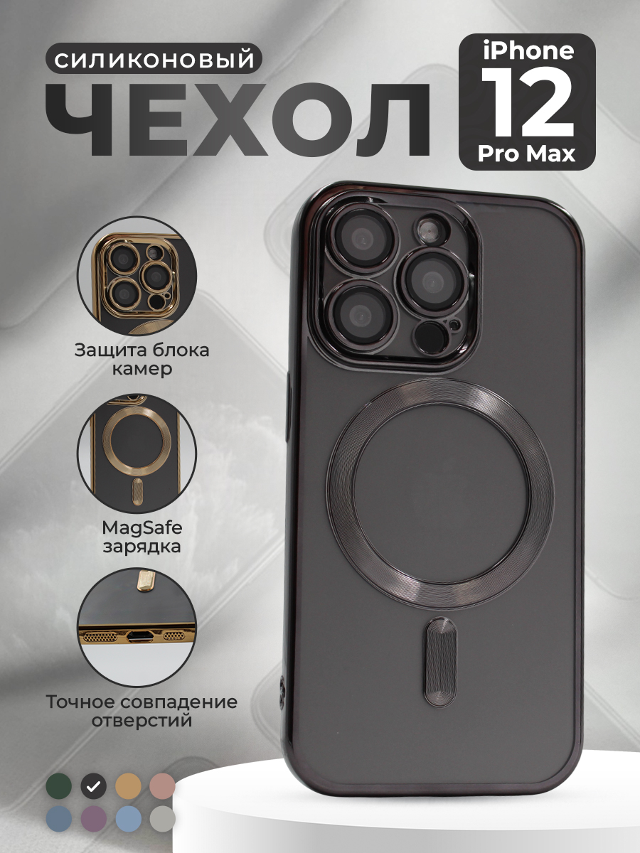 Прозрачный чехол с глянцевой рамкой для iPhone 12 Pro Max, MagSafe, черный
