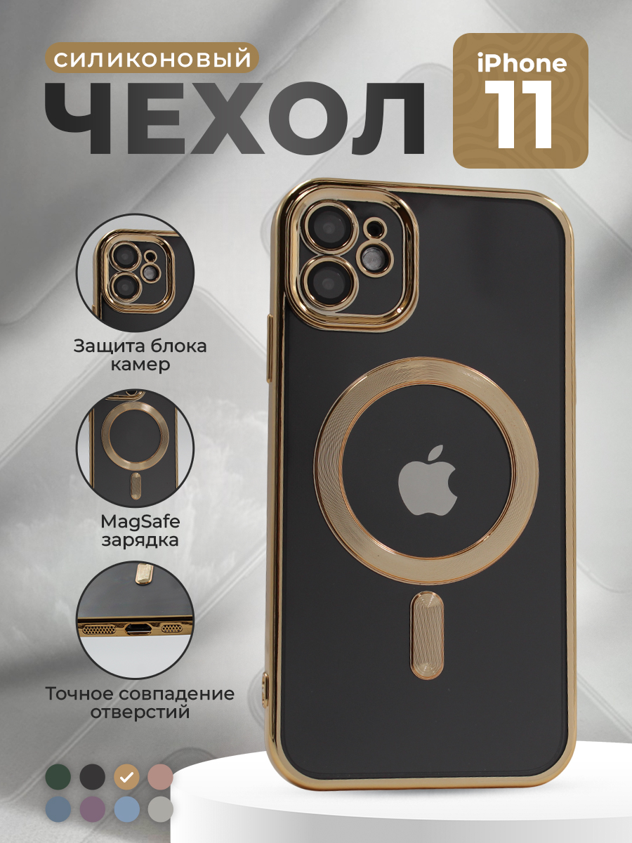 Прозрачный чехол с глянцевой рамкой для iPhone 11, MagSafe, золотистый
