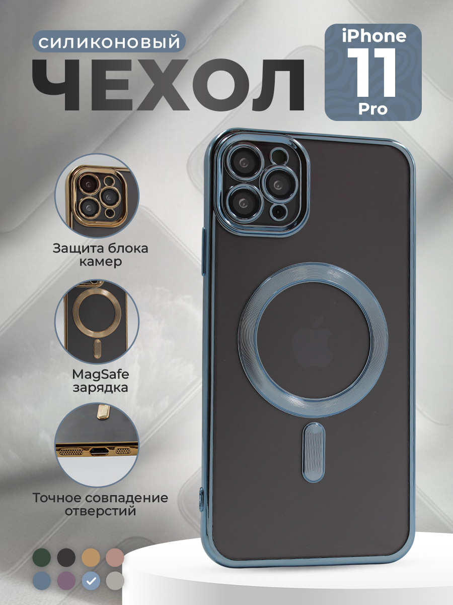 Прозрачный чехол с глянцевой рамкой для iPhone 11 Pro, MagSafe, серо-синий