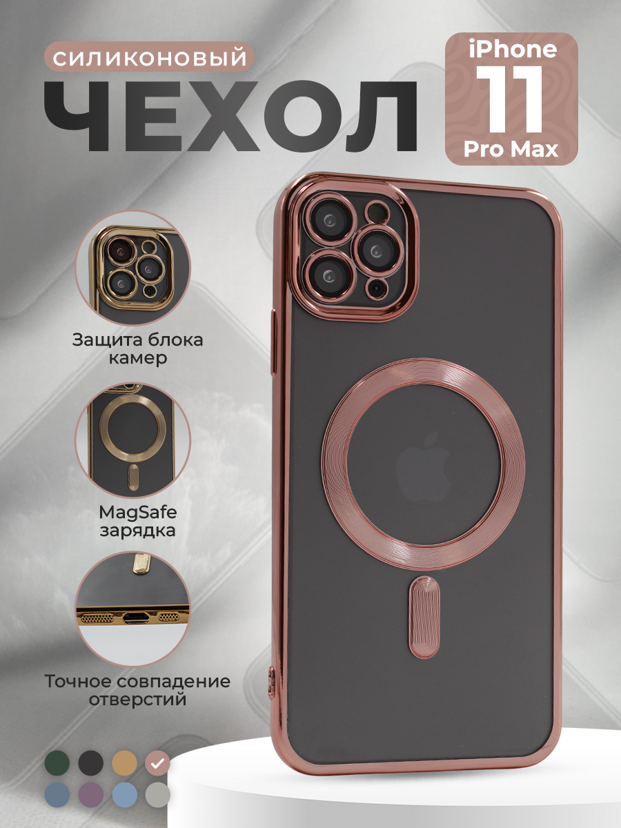 Прозрачный чехол с глянцевой рамкой для iPhone 11 Pro Max, MagSafe, розовый