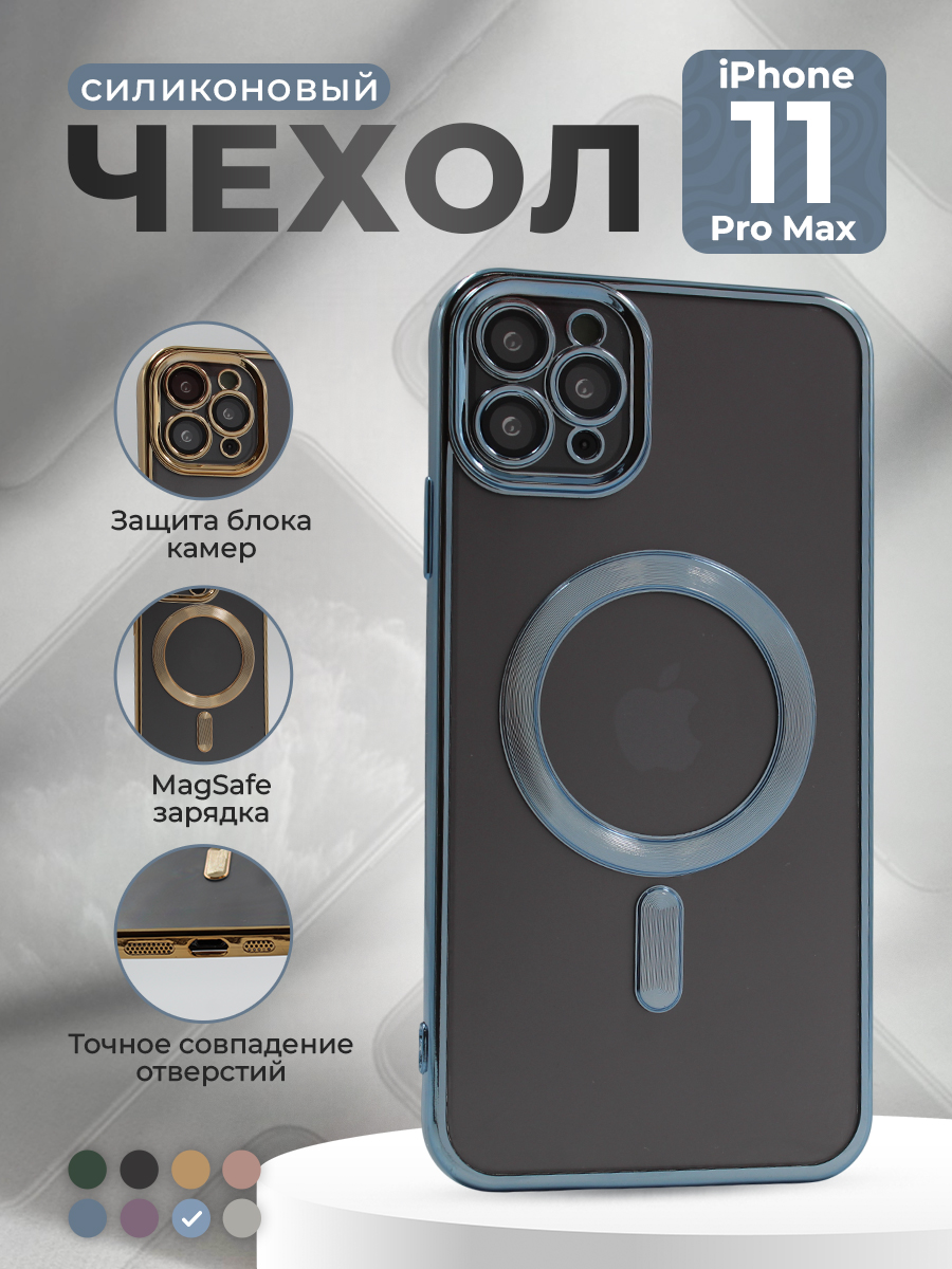 Прозрачный чехол с глянцевой рамкой для iPhone 11 Pro Max, MagSafe, серо-синий