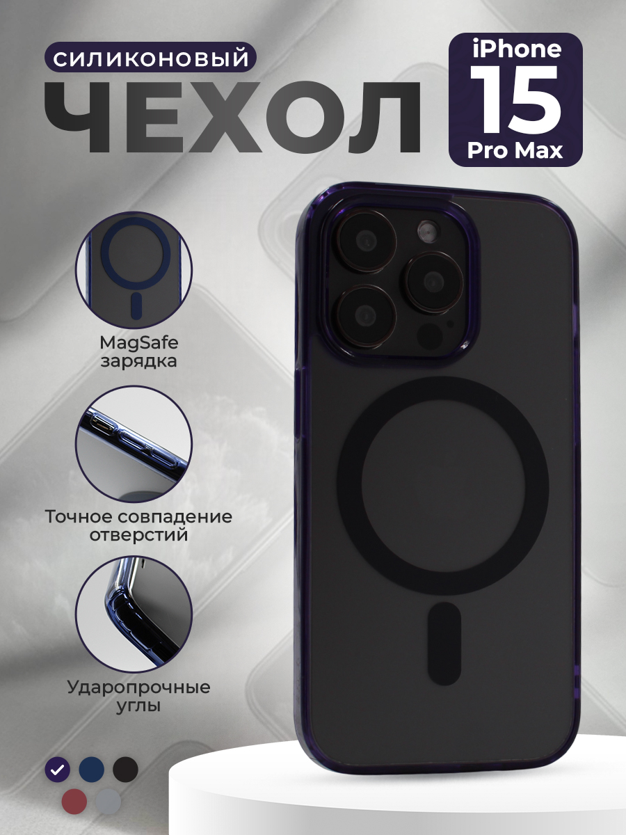 Защитный чехол с матовой оправой объектива для iPhone 15 Pro Max, MagSafe, фиолетовый