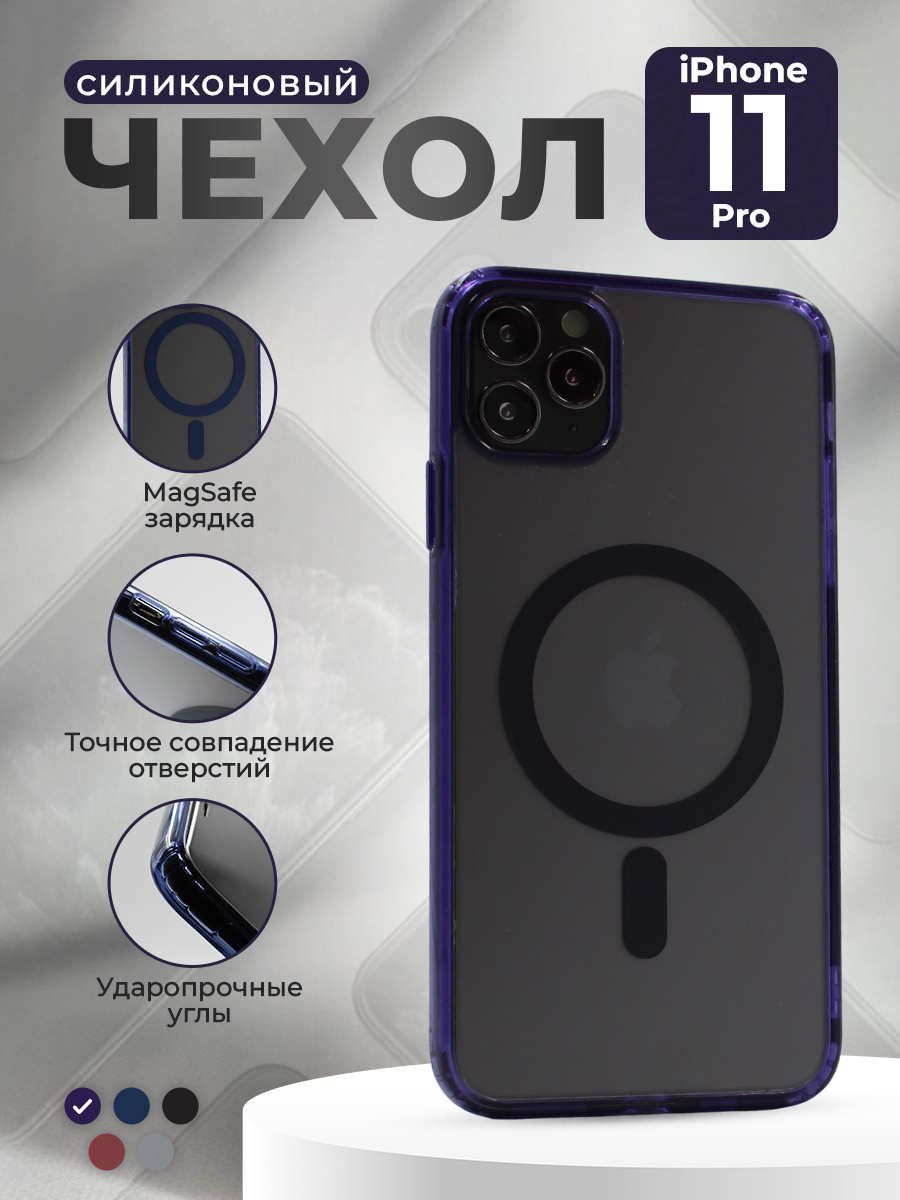 Защитный чехол с матовой оправой объектива для iPhone 11 Pro, MagSafe, фиолетовый