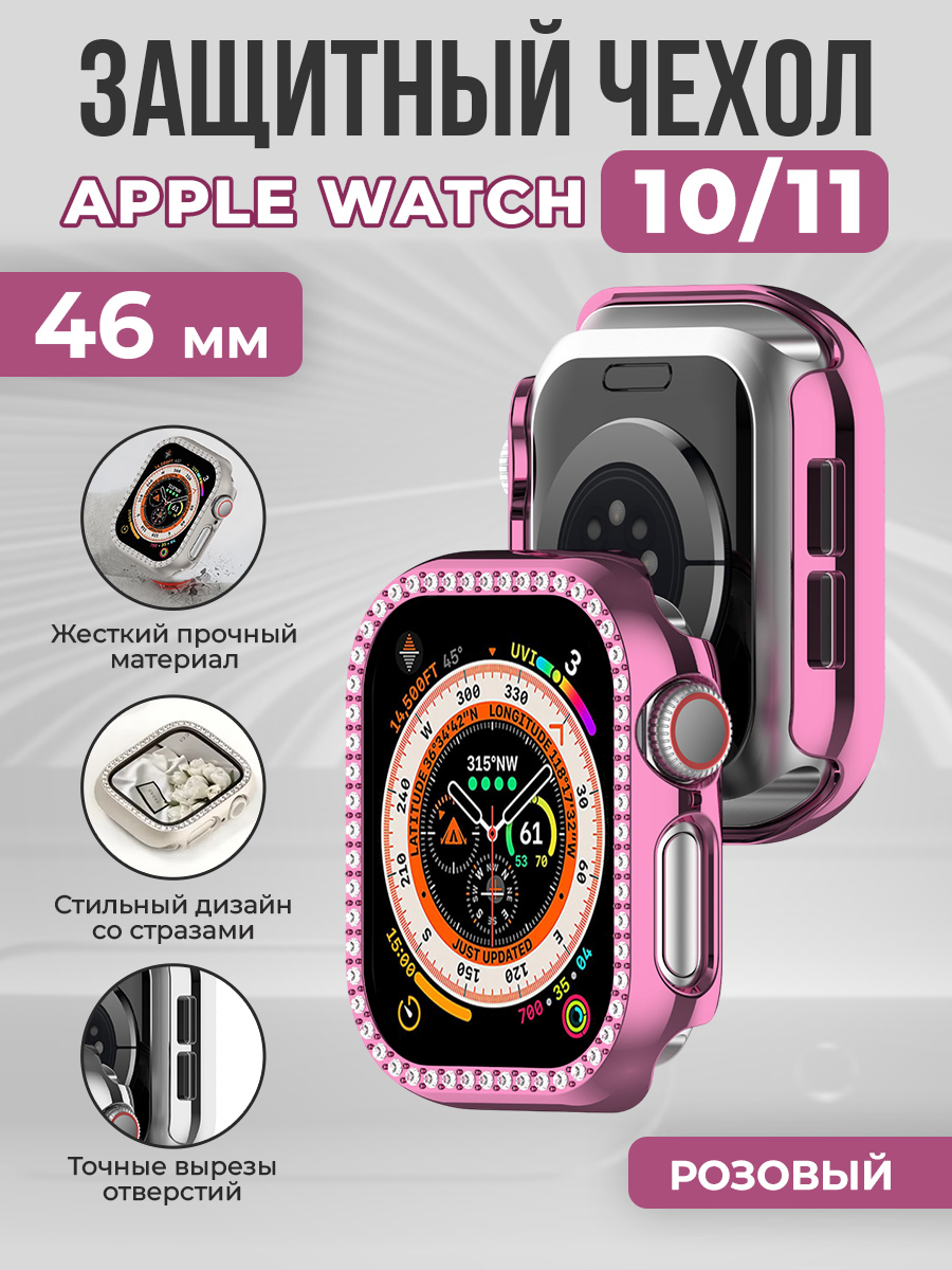 Модный защитный чехол со стразами для Apple Watch 10/11, 46 мм, розовый