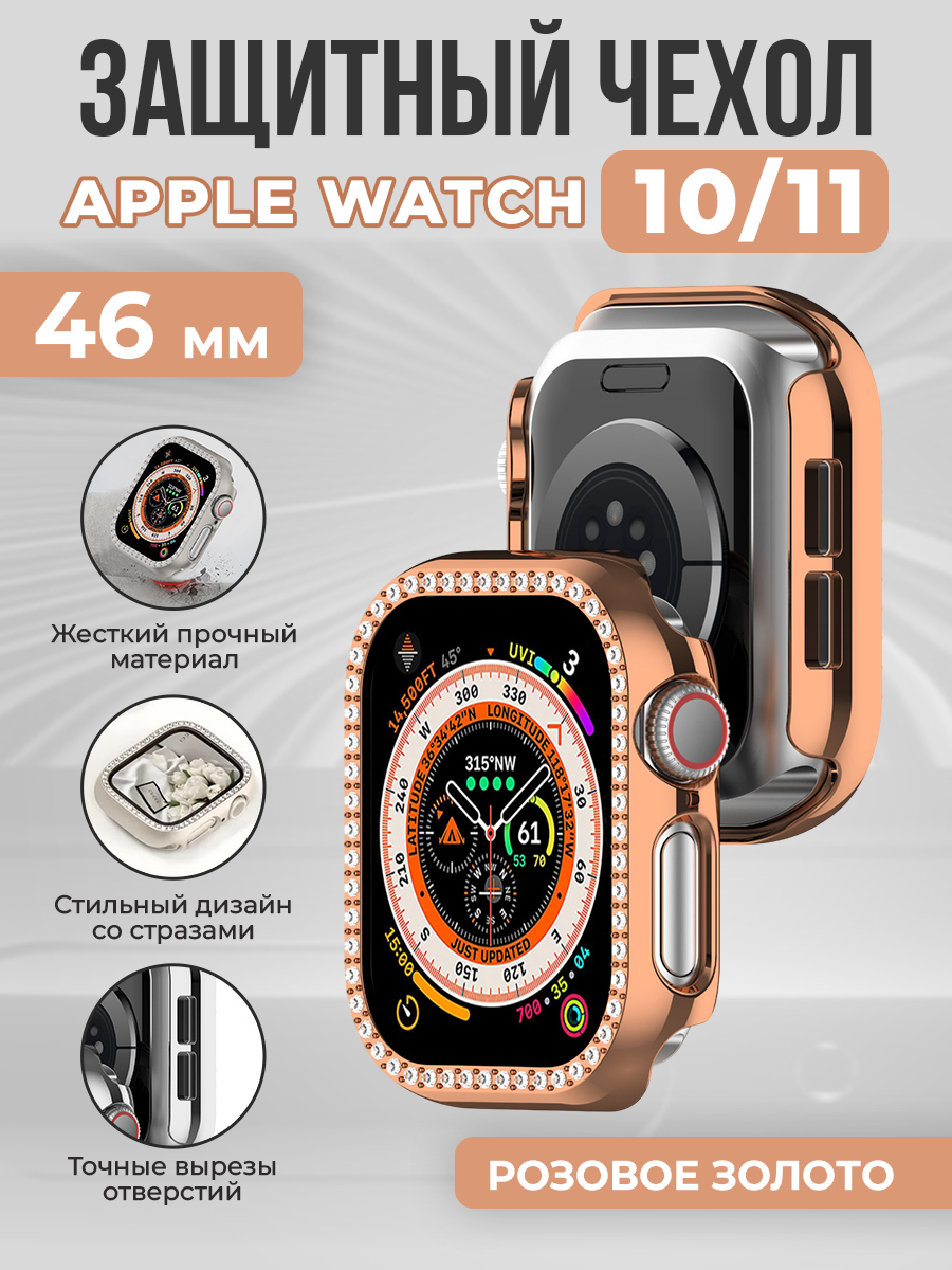 Модный защитный чехол со стразами для Apple Watch 10/11, 46 мм, розовое золото