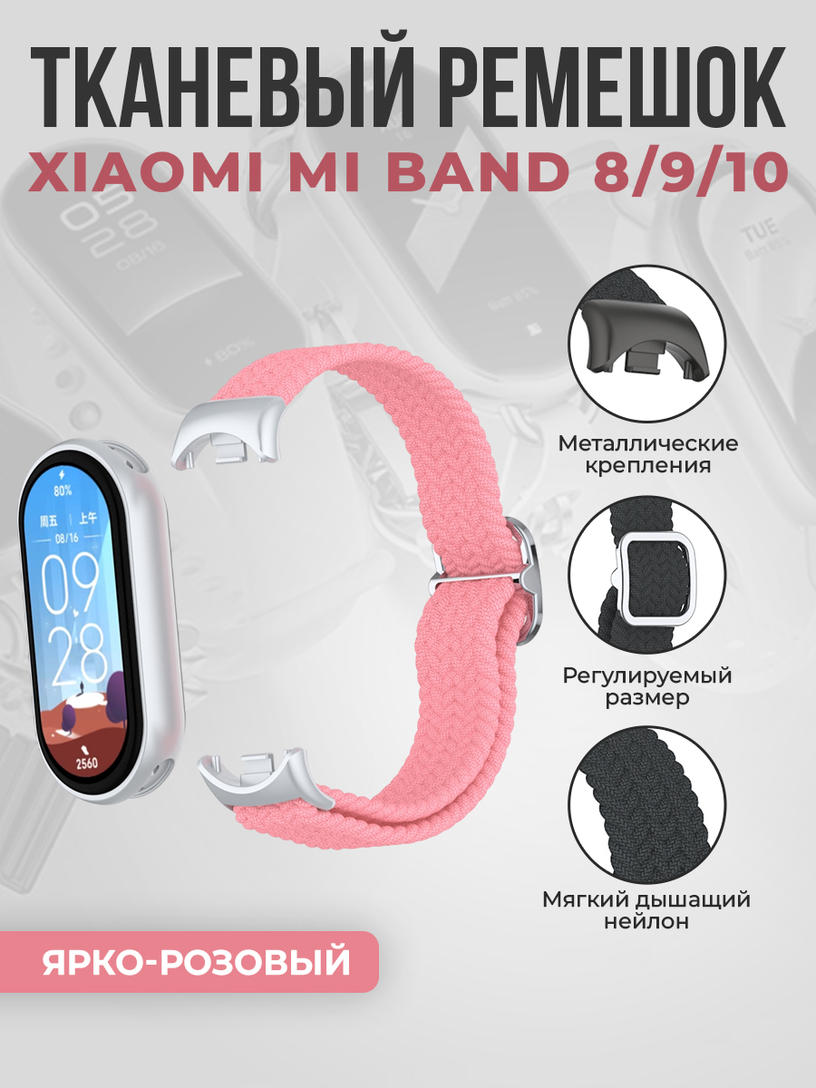 Тканевый ремешок для Xiaomi Mi Band 8/9/10, регулировка по длине, ярко-розовый