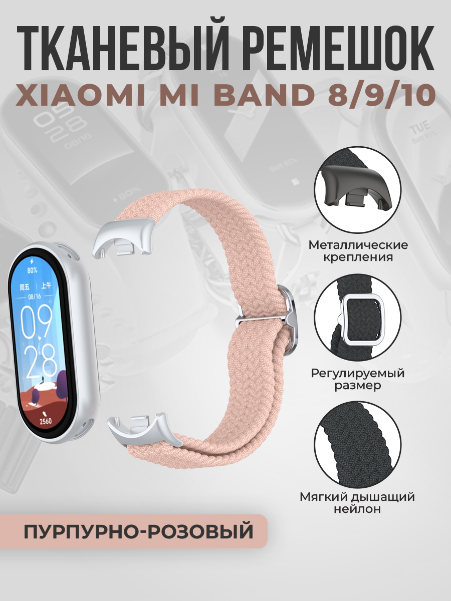 Тканевый ремешок для Xiaomi Mi Band 8/9/10, регулировка по длине, пурпурно-розовый