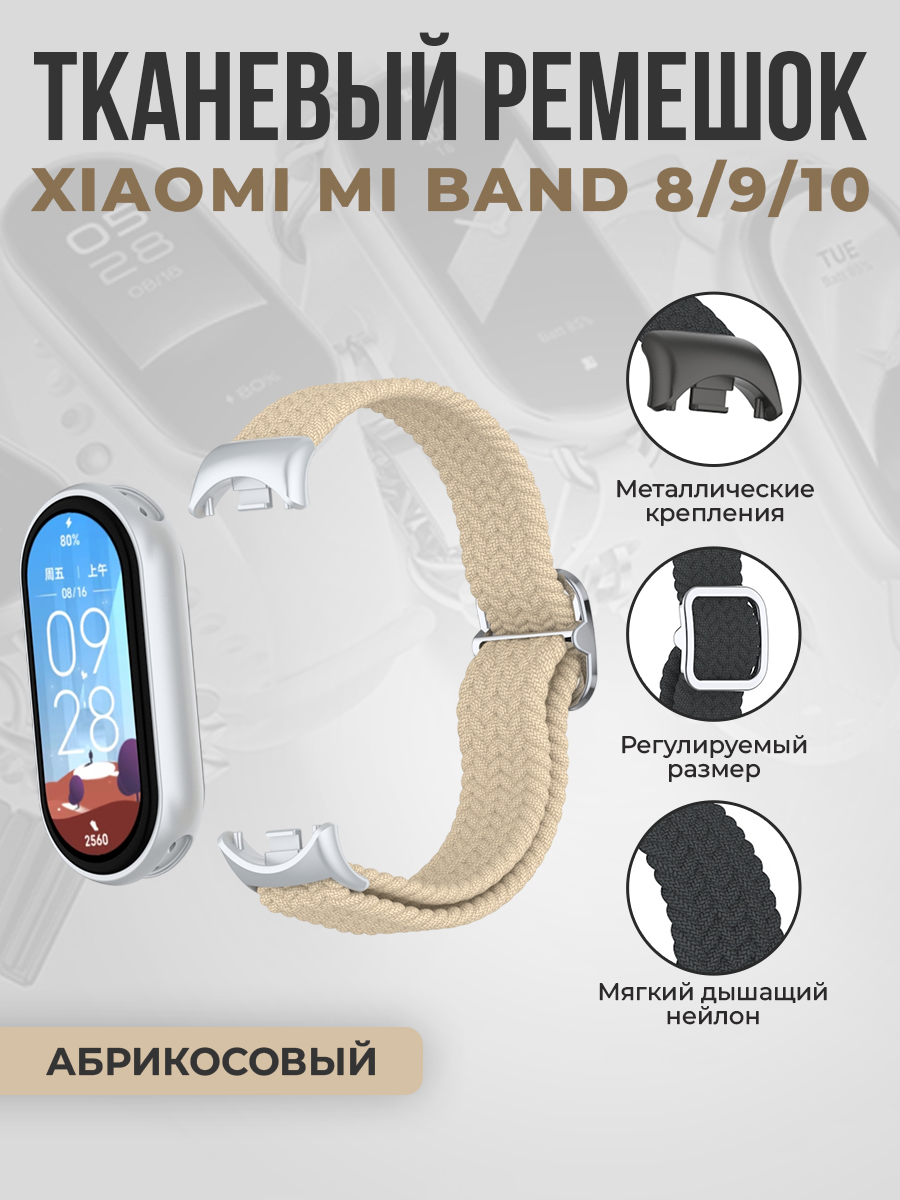 Тканевый ремешок для Xiaomi Mi Band 8/9/10, регулировка по длине, абрикосовый