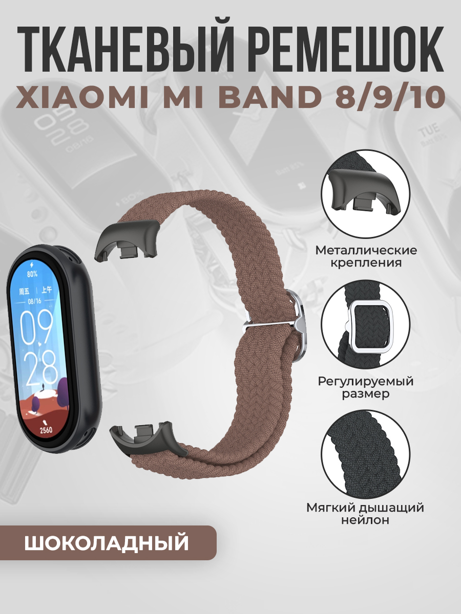 Тканевый ремешок для Xiaomi Mi Band 8/9/10, регулировка по длине, шоколадный