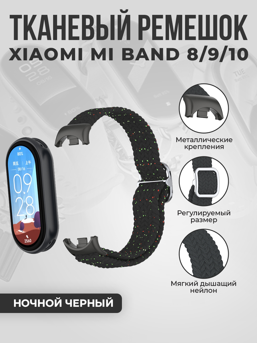 Тканевый ремешок для Xiaomi Mi Band 8/9/10, регулировка по длине, ночной черный