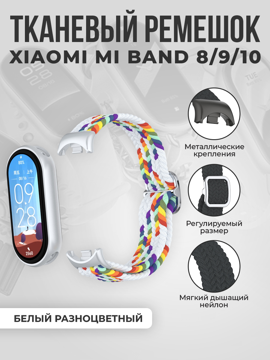 Тканевый ремешок для Xiaomi Mi Band 8/9/10, регулировка по длине, белый разноцветный