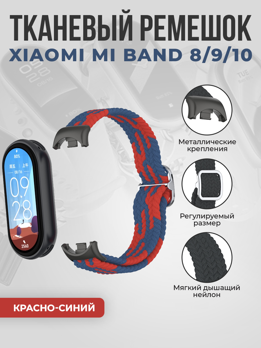 Тканевый ремешок для Xiaomi Mi Band 8/9/10, регулировка по длине, красно-синий
