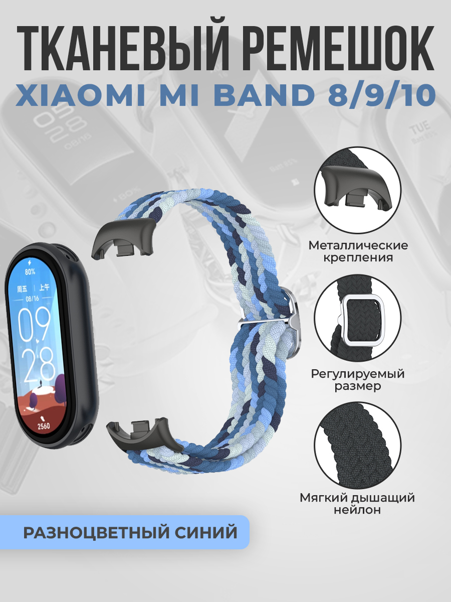 Тканевый ремешок для Xiaomi Mi Band 8/9/10, регулировка по длине, разноцветный синий