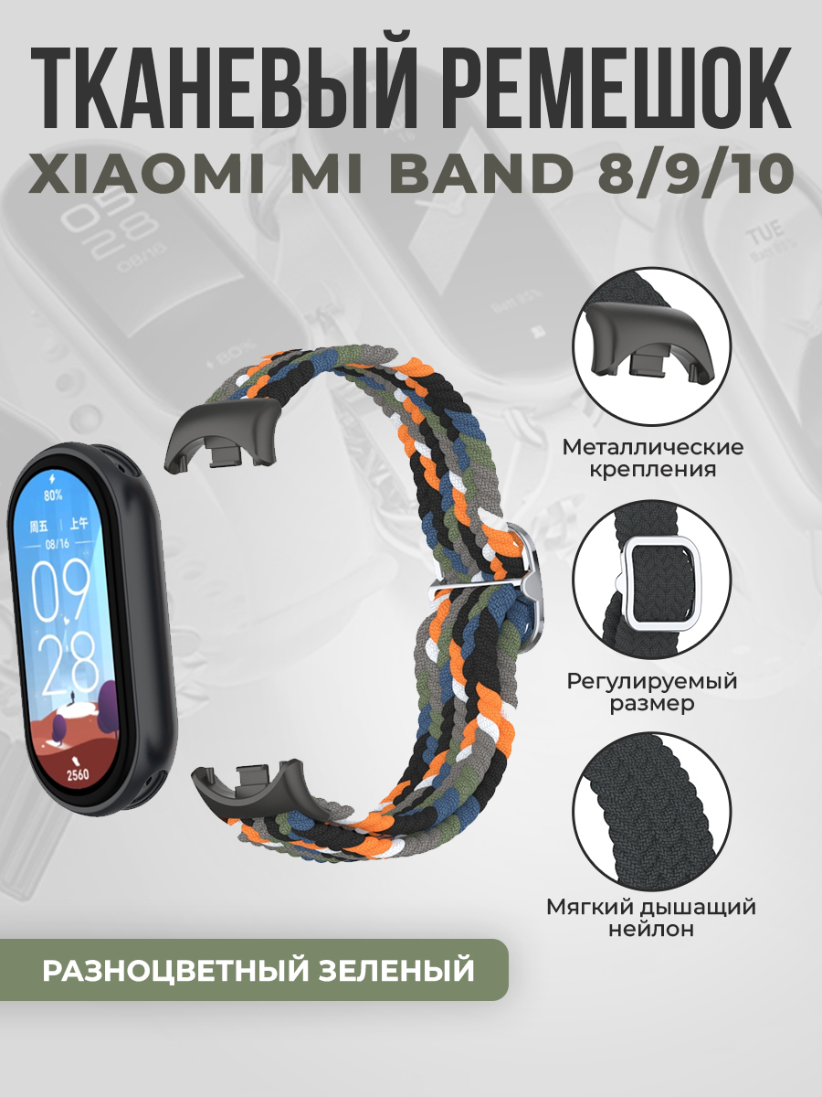 Тканевый ремешок для Xiaomi Mi Band 8/9/10, регулировка по длине, разноцветный зеленый