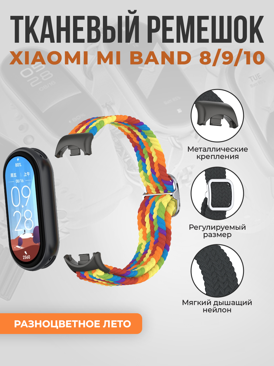 Тканевый ремешок для Xiaomi Mi Band 8/9/10, регулировка по длине, разноцветное лето