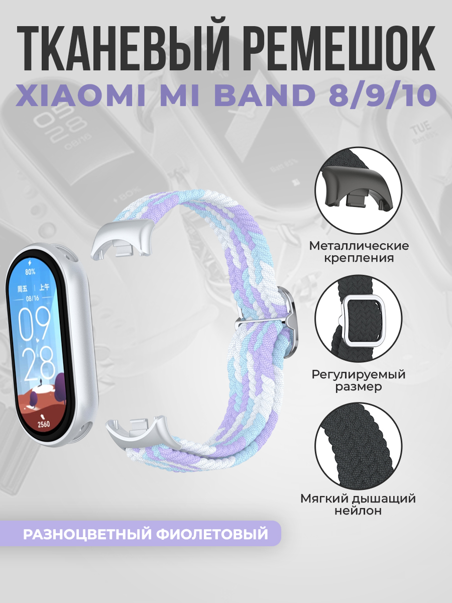 Тканевый ремешок для Xiaomi Mi Band 8/9/10, регулировка по длине, разноцветный фиолетовый
