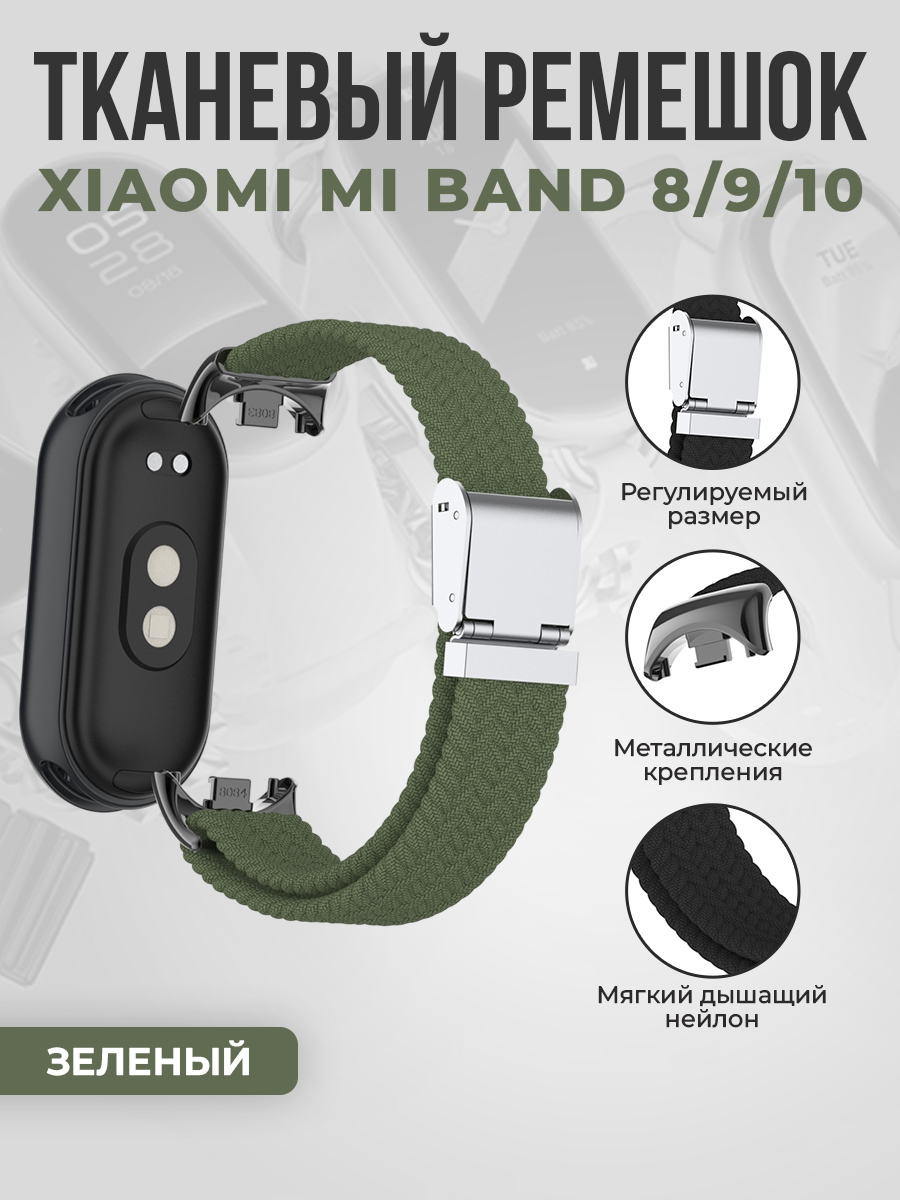Тканевый ремешок для Xiaomi Mi Band 8/9/10, металлическая застежка, зеленый