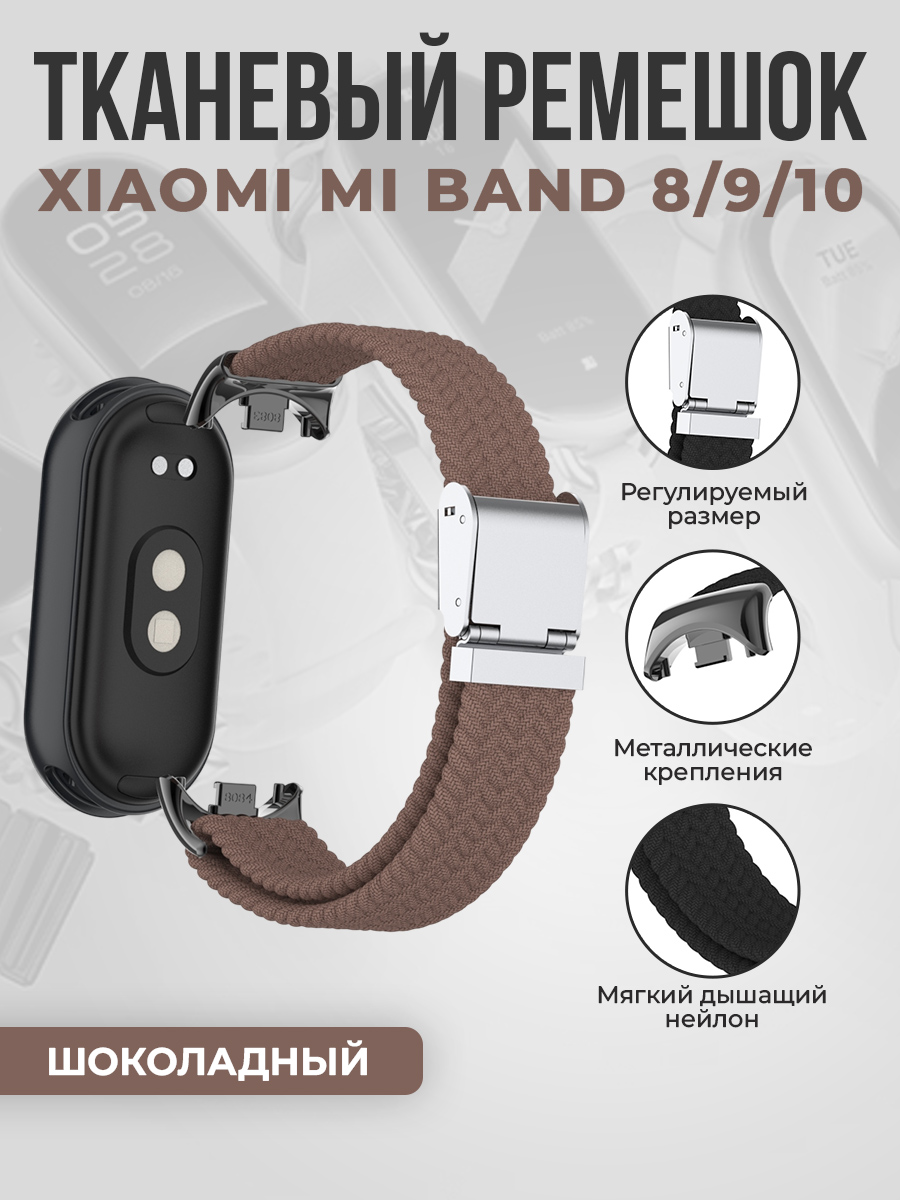 Тканевый ремешок для Xiaomi Mi Band 8/9/10, металлическая застежка, шоколадный