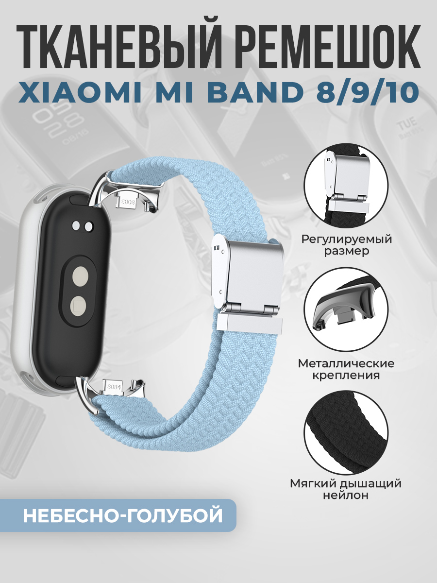 Тканевый ремешок для Xiaomi Mi Band 8/9/10, металлическая застежка, небесно-голубой