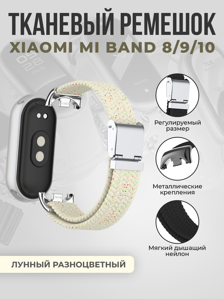 Тканевый ремешок для Xiaomi Mi Band 8/9/10, металлическая застежка, лунный разноцветный